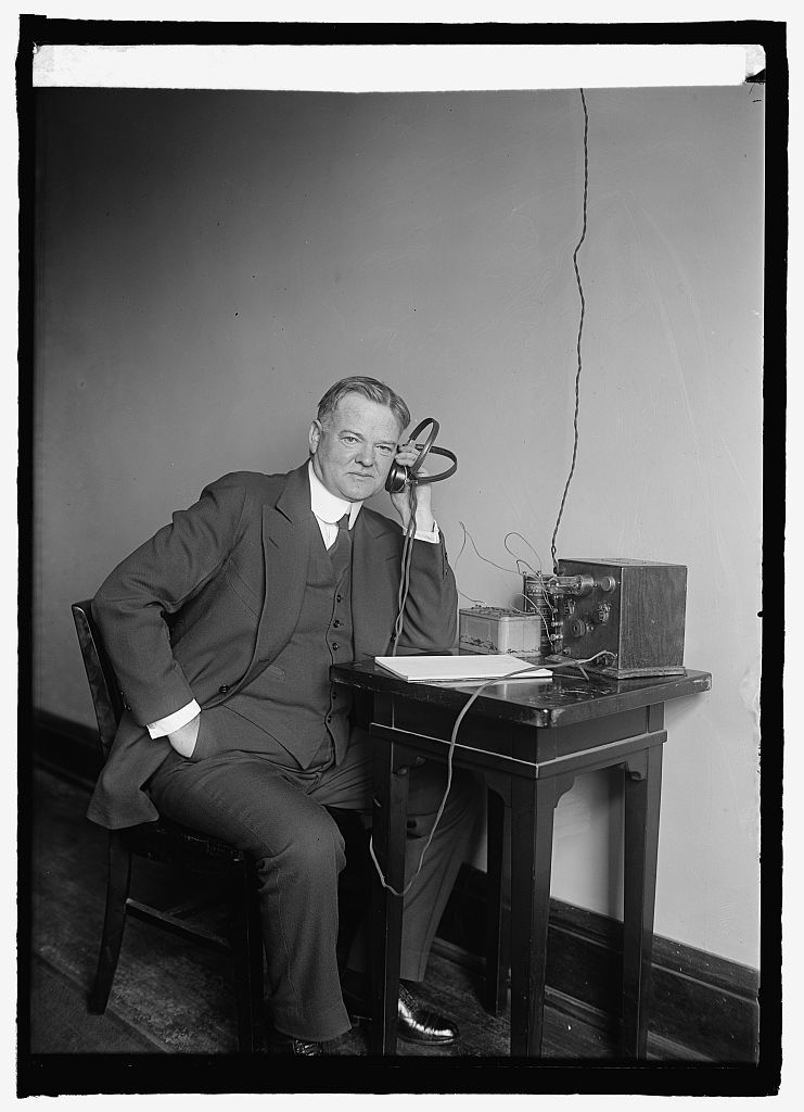 Herbert Hoover, serving as U.S. Secretary of Commerce at the time, is shown operating radio equipment, reflecting his keen interest in technological innovation and communication. During his tenure, he played a key role in shaping the radio industry by introducing regulations to manage the airwaves while supporting its growth as a powerful medium for news and entertainment.