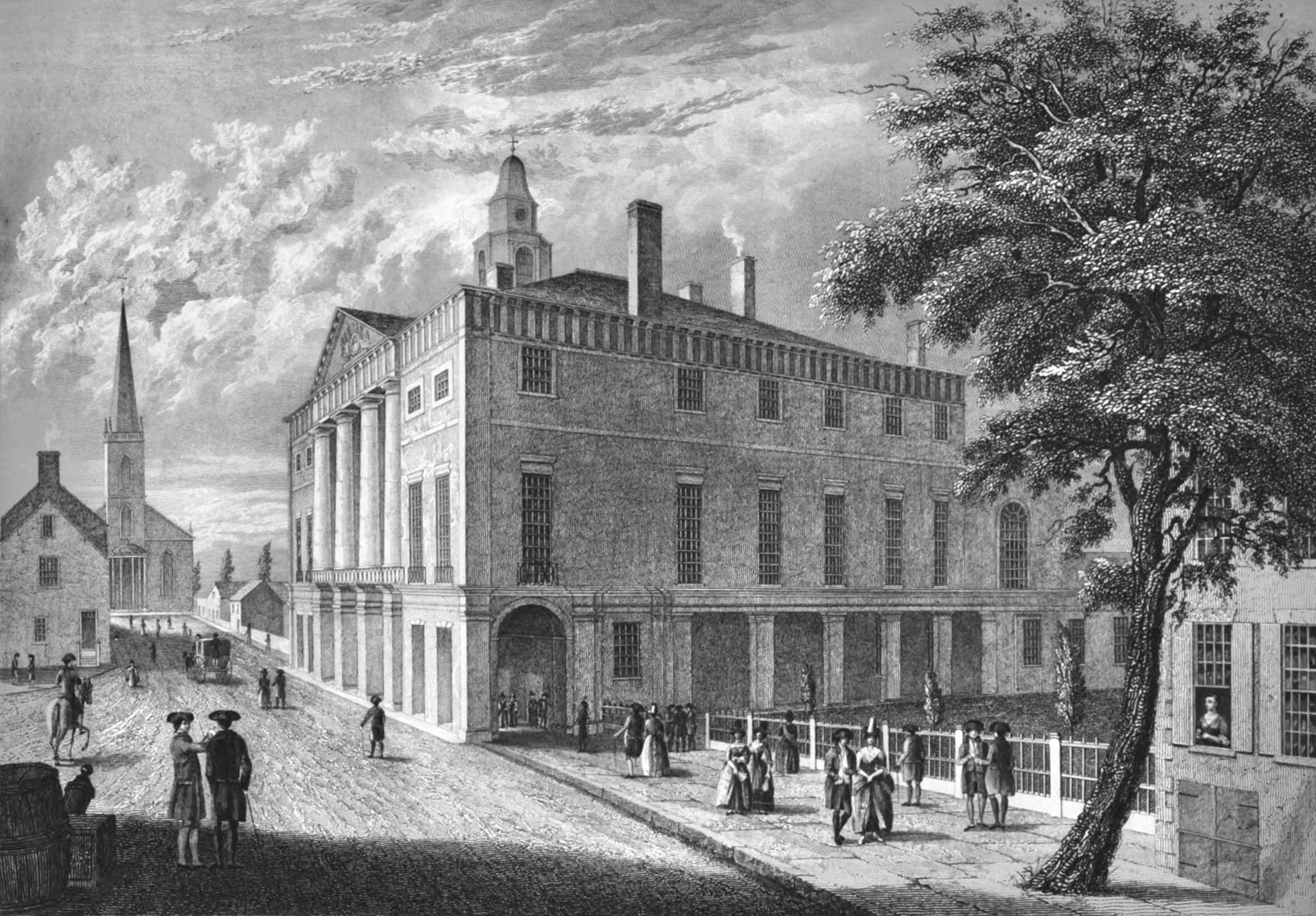 Image: Engraving of Federal Hall in New York City via Wikimedia Commons, public domain