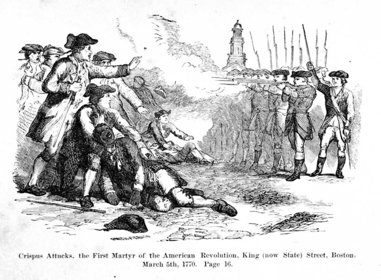“Crispus Attucks, the first martyr of the American Revolution, King (now State) Street, Boston, March 5th, 1770”