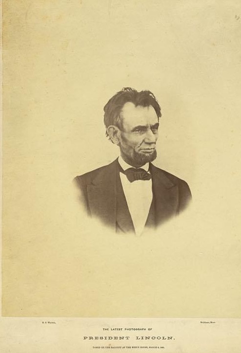“The latest photograph of President Lincoln – taken on the balcony at the White House, March 6, 1865”