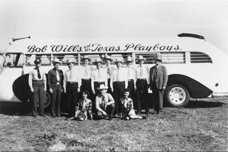 Born March 6, 1905 in Kosse, Texas Bob Wills – the King of Western Swing – was a singer, songwriter, fiddler, and bandleader. That’s Bob (front, center) with his Texas Playboys on tour. When asked in 1957 about rock-n-roll he replied “Why man, that’s the same kind of music we’ve been playin’ since 1928!”