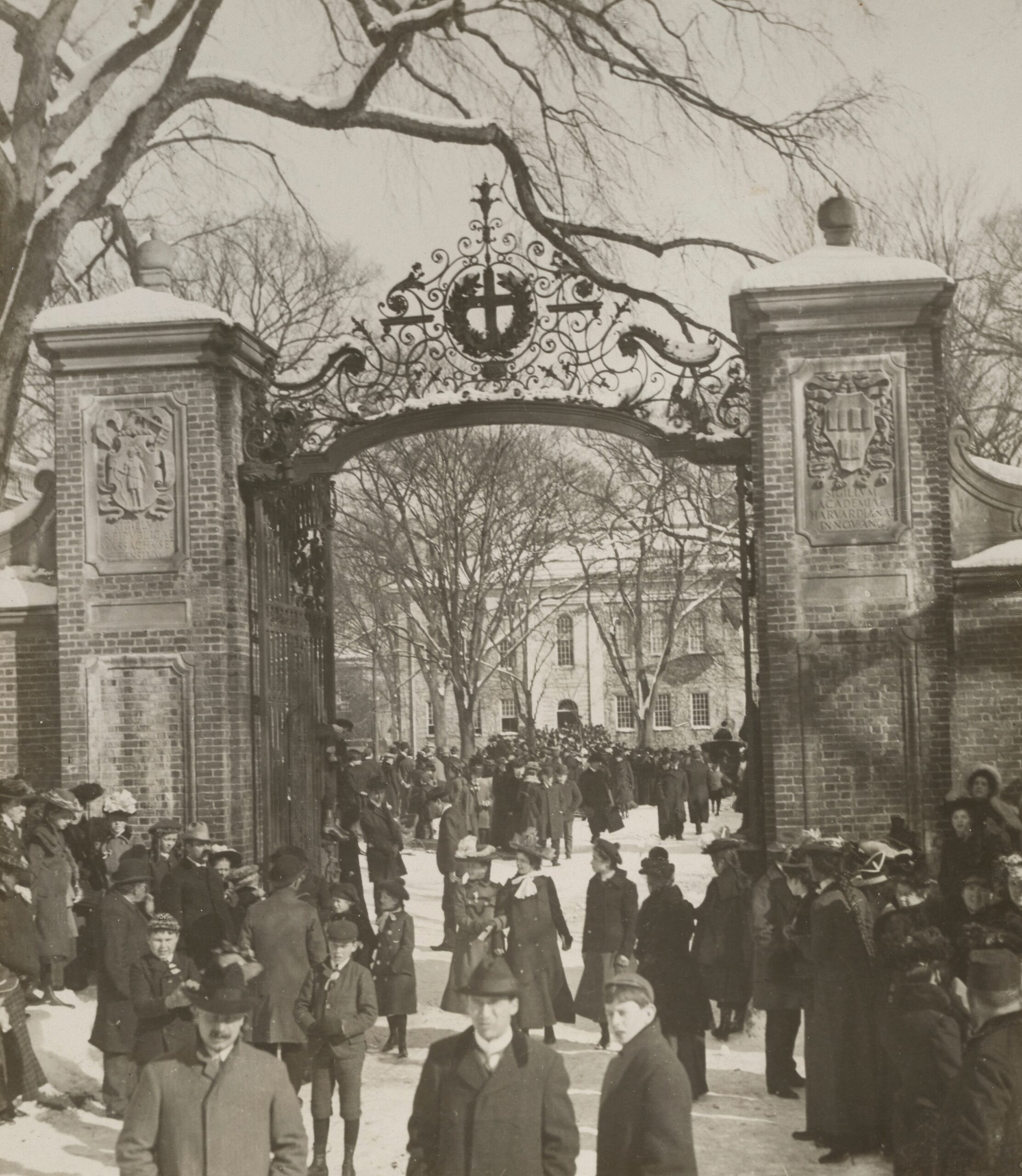 Crowds gathered at Harvard University on March 6, 1902 which was the day when Prince Henry of Prussia received an honorary doctorate (LL.D.) from Harvard during his visit to the United States.