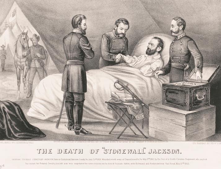 A Currier & Ives print titled The Death of “Stonewall” Jackson on May 10, 1863 in Virginia