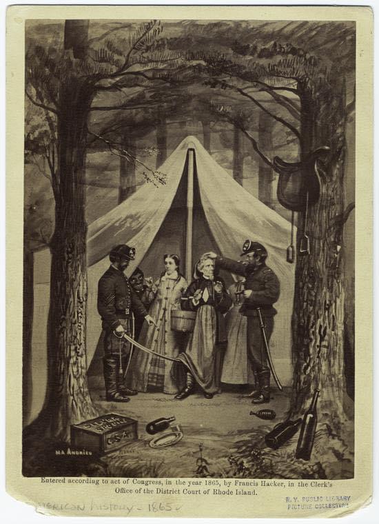 Image: The Miriam and Ira D. Wallach Division of Art, Prints and Photographs: Picture Collection, The New York Public Library. “Jefferson Davis, President of the Confederate States of America, disguised as a woman and captured by Union soldiers, Georgia, 1865.” New York Public Library Digital Collections.