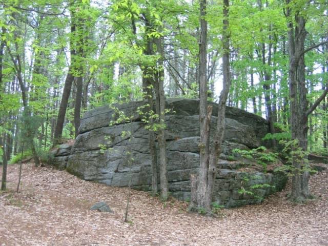 Redemption Rock in Princeton, Massachusetts which was near the spot where a ransom was paid to Native Americans for the release of Puritan woman Mary Rowlandson on May 2, 1676.