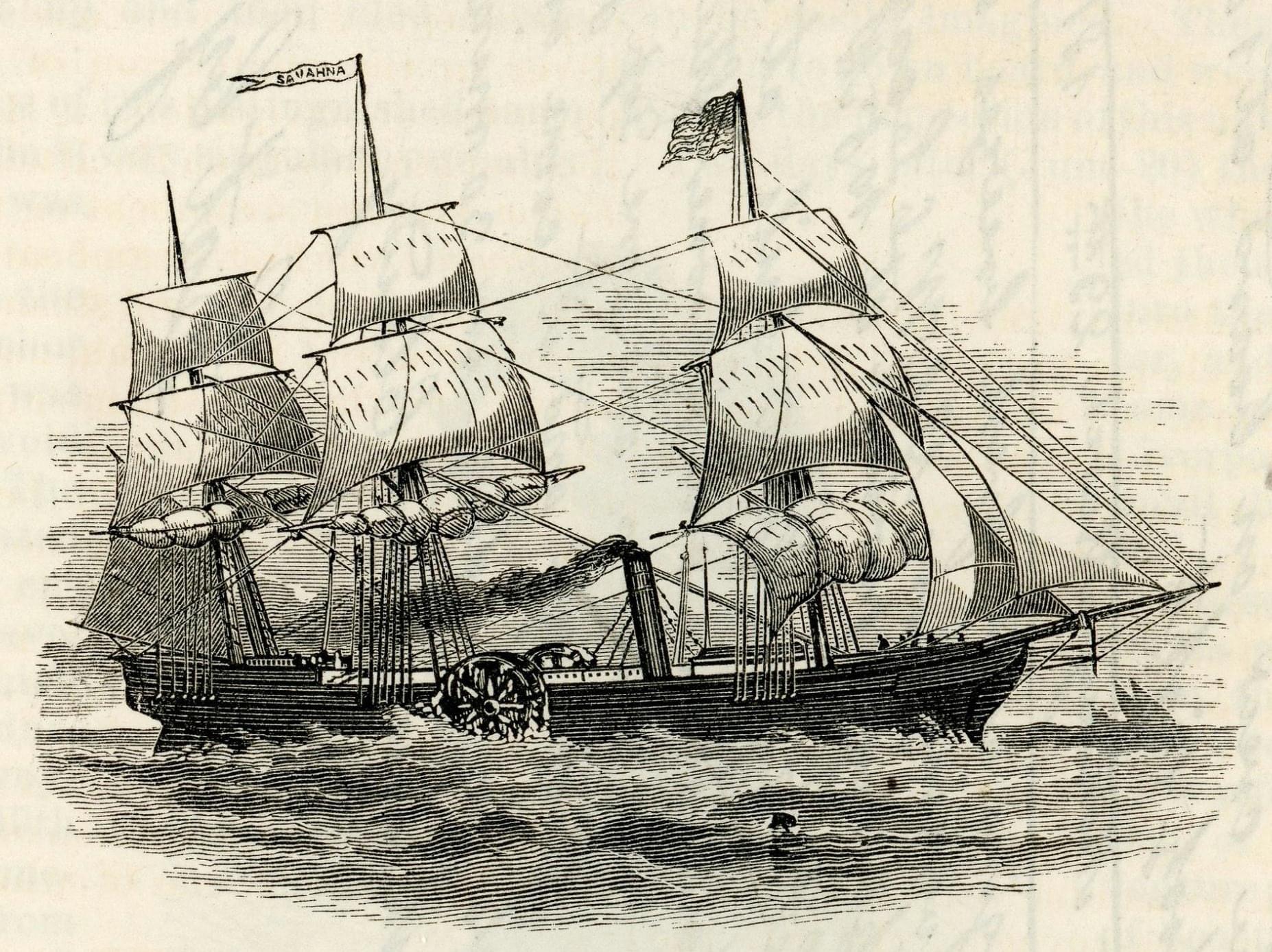 An illustration of the SS Savannah, the first steamship that crossed the Atlantic, departed Savannah Harbor on May 22, 1819.