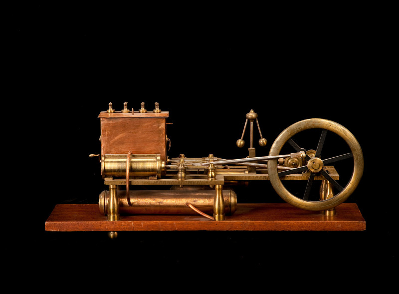 Image of a model of Stuart Perry’s improvement to his 1844 gas engine that was patented two years later in 1846 via National Museum of American History, public domain