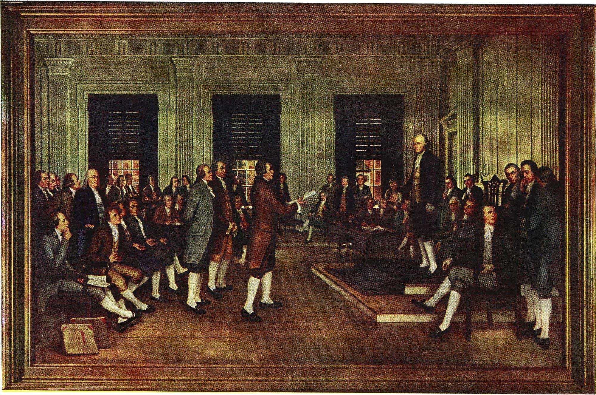 Image: The Adoption of the U.S. Constitution in Congress at Independence Hall, Philadelphia, Sept. 17, 1787 via Wikimedia Commons, public domain