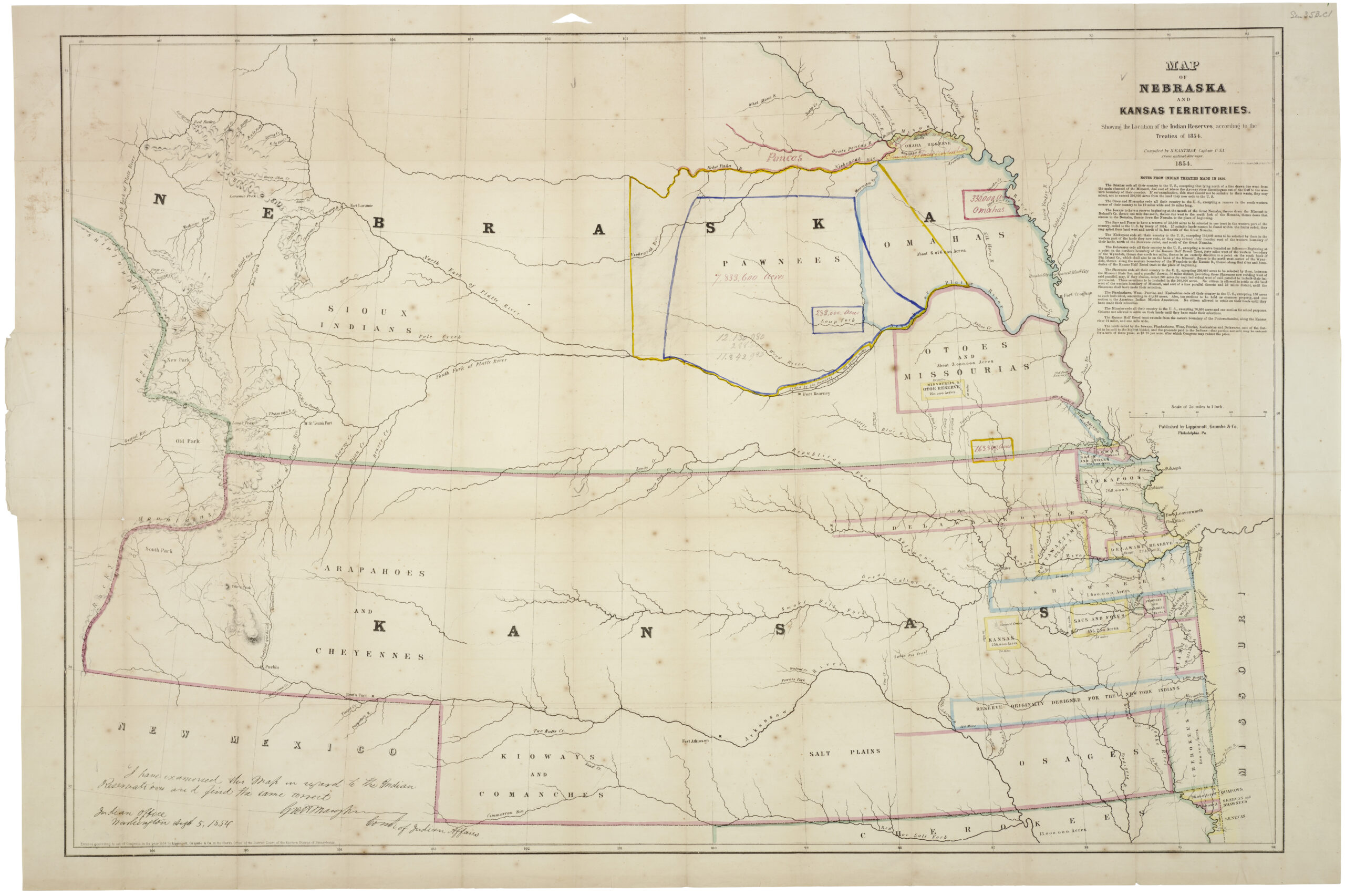 Image: Map of Nebraska and Kansas Territories, showing the location of the Indian Reserves according to the treaties of 1854 from NARA via Wikimedia Commons, no known restrictions