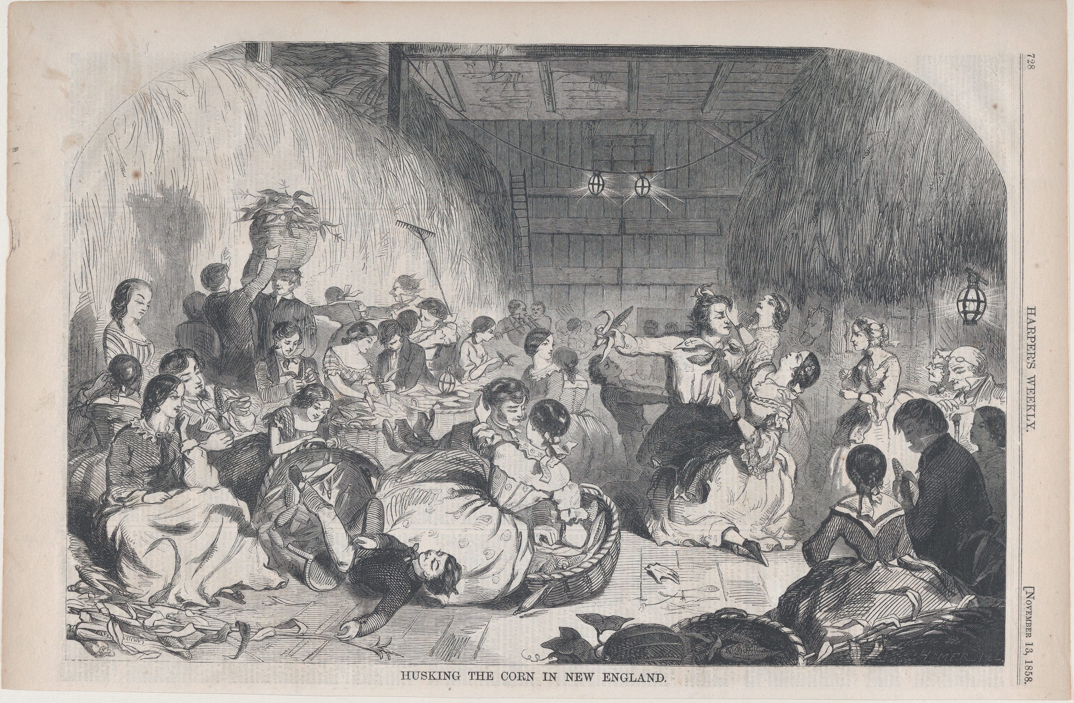 Husking Corn in New England A print by Winslow Homer that was published in Harper’s Weekly on November 13, 1858.