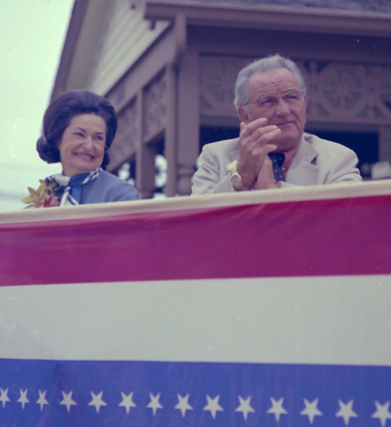 Ladybird and LBJ at Southwest Texas State College in November 1971. On November 17, 1934, LBJ and Claudia Alta Taylor (Ladybird) were married in San Antonio, Texas. Image via Wikimedia Commons, no known restrictions