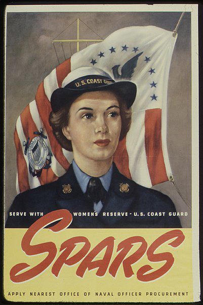 On November 23, 1942, President Roosevelt authorized the US Coast Guard to form a Women’s Reserve force known as SPARS, from the USCG motto, “Semper Paratus – Always Ready.” Officers and enlisted SPARS performed a wide variety of duties in the continental US, Alaska, and Hawaii. Image from NARA via Wikimedia Commons, public domain in the US.