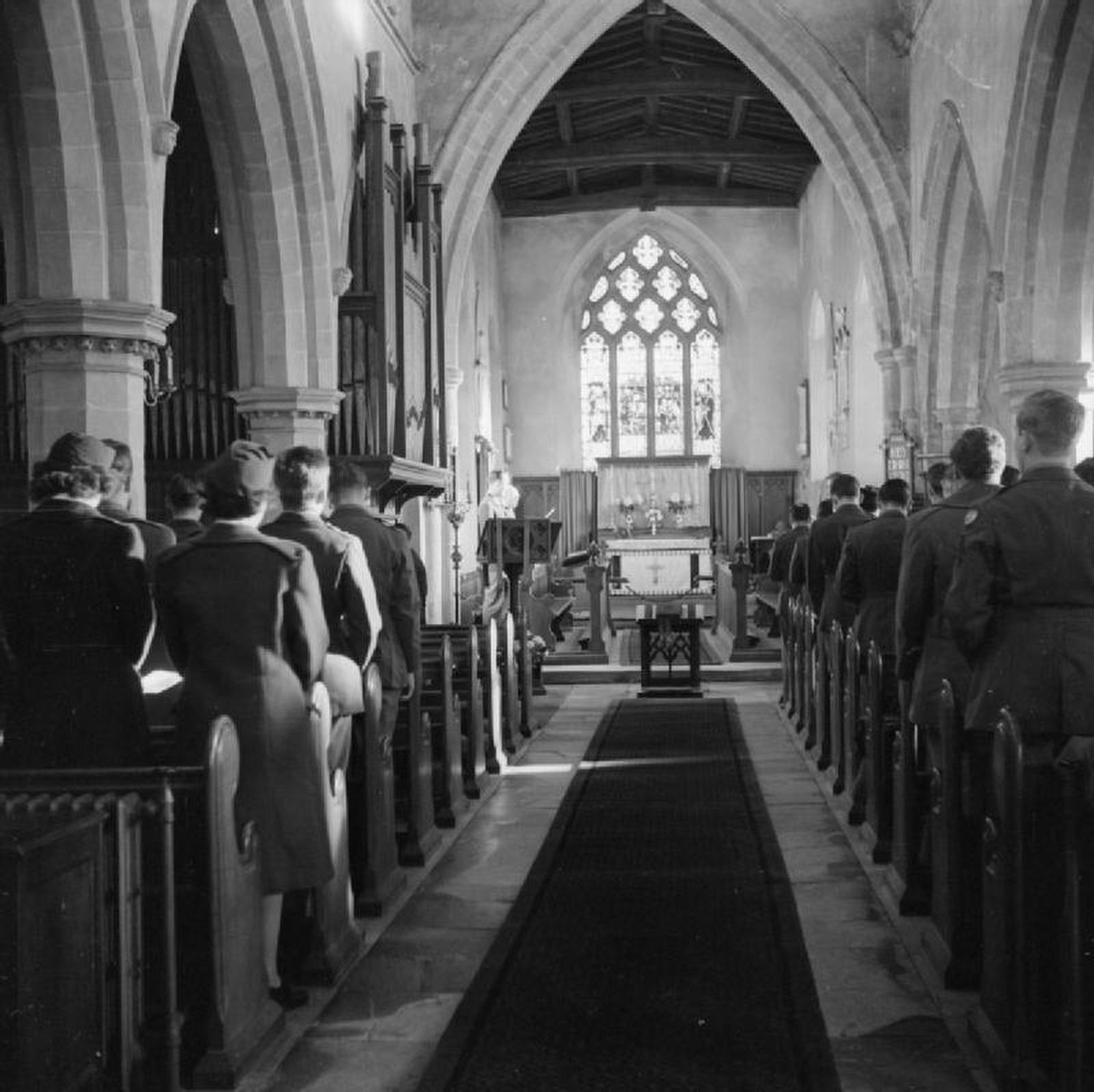 Thanksgiving Day Service Held in English Country Church- Americans in Cransley, Northamptonshire, England, UK November 23, 1944 via Wikimedia Commons, public domain
