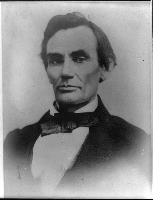 A photograph of Abraham Lincoln from October 11, 1858 via Library of Congress, no known restrictions