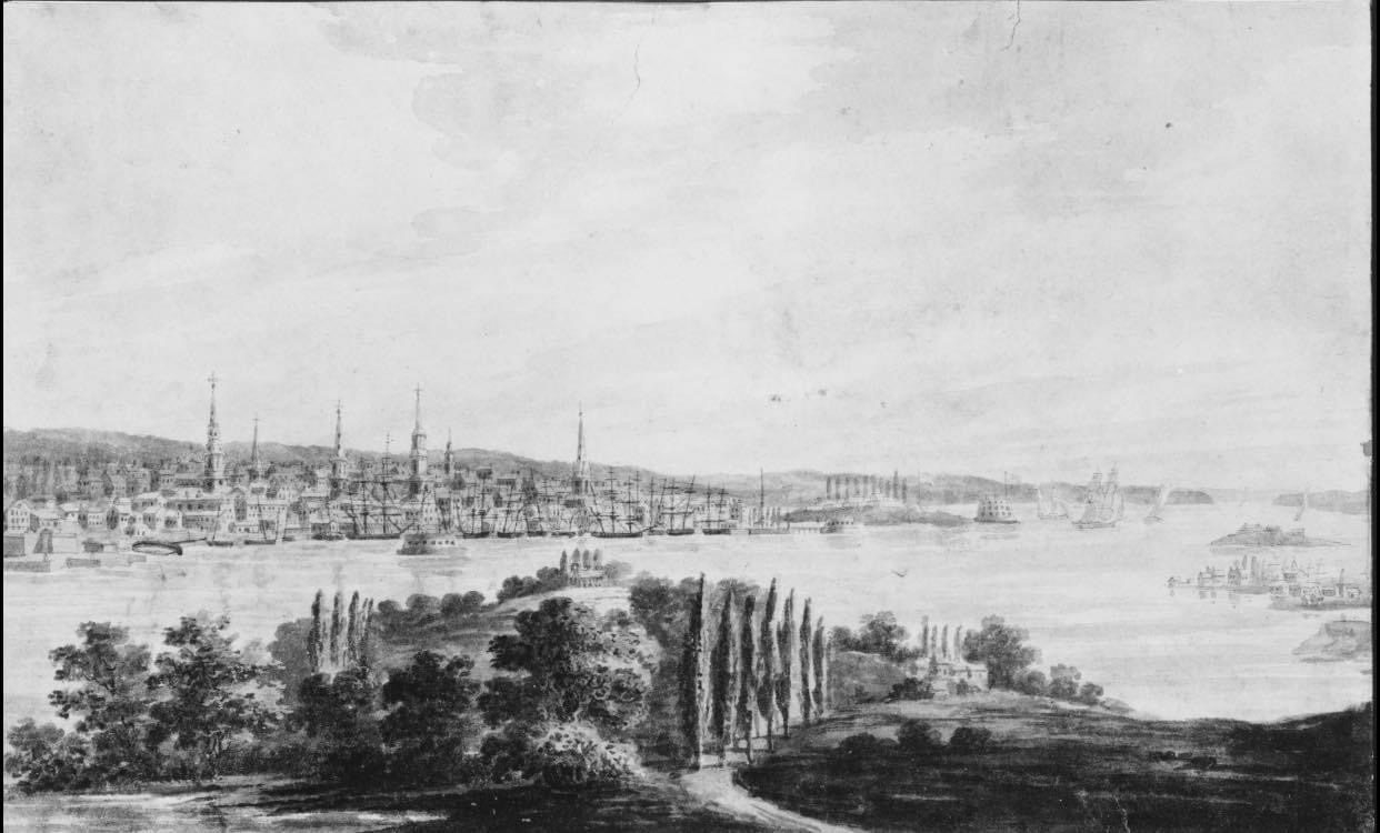 A print of New York City and Harbor from Weehawken c. 1811 On October 11, 1811 the first steam-powered ferry service commenced in New York Harbor. Image via Wikimedia Commons, public domain