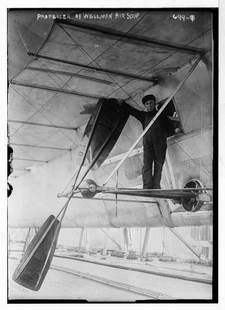 On October 15, 1910 Airship America, a dirigible departed Atlantic City on its quest to cross the Atlantic Ocean. It’s considered the first time that a self-propelled, manned air vessel tried to accomplish this feat. Unluckily, a few days later, the crew needed to abandon ship due to engine issues. Image: Man standing next to a propeller of the Wellman Airship – America via Wikimedia Commons, public domain