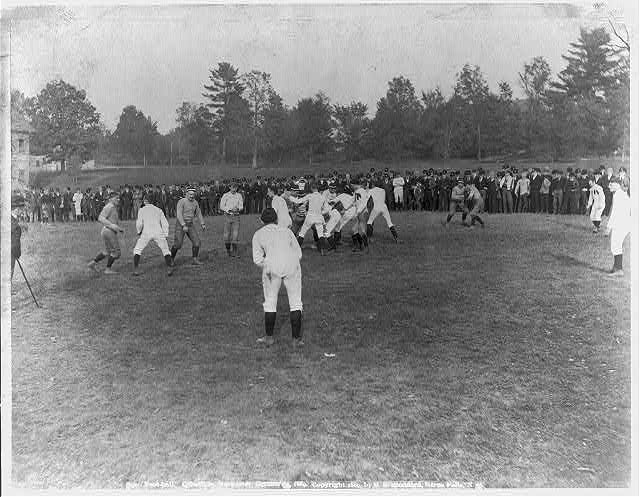 Photo of an early college football game between Rochester and Cornell that was taken on October 19, 1889. Image via Library of Congress, no known restrictions