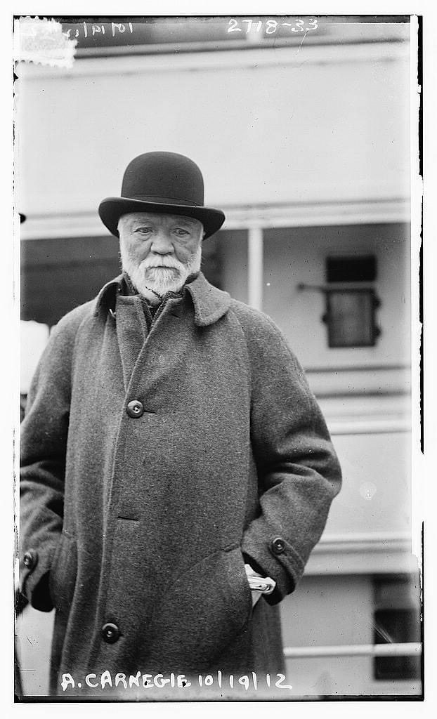 A photo of Andrew Carnegie dated October 19, 1912 when he was in his late 70s. In the early 1900s Andrew Carnegie funded nearly 1,700 libraries in various cities and towns throughout the United States. Image via Library of Congress, no known restrictions