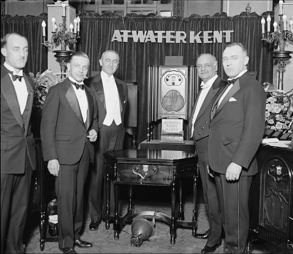 Vice President Curtis on the right, standing next to radio, with others during a radio show – October 29, 1929 Image via Library of Congress, no known restrictions