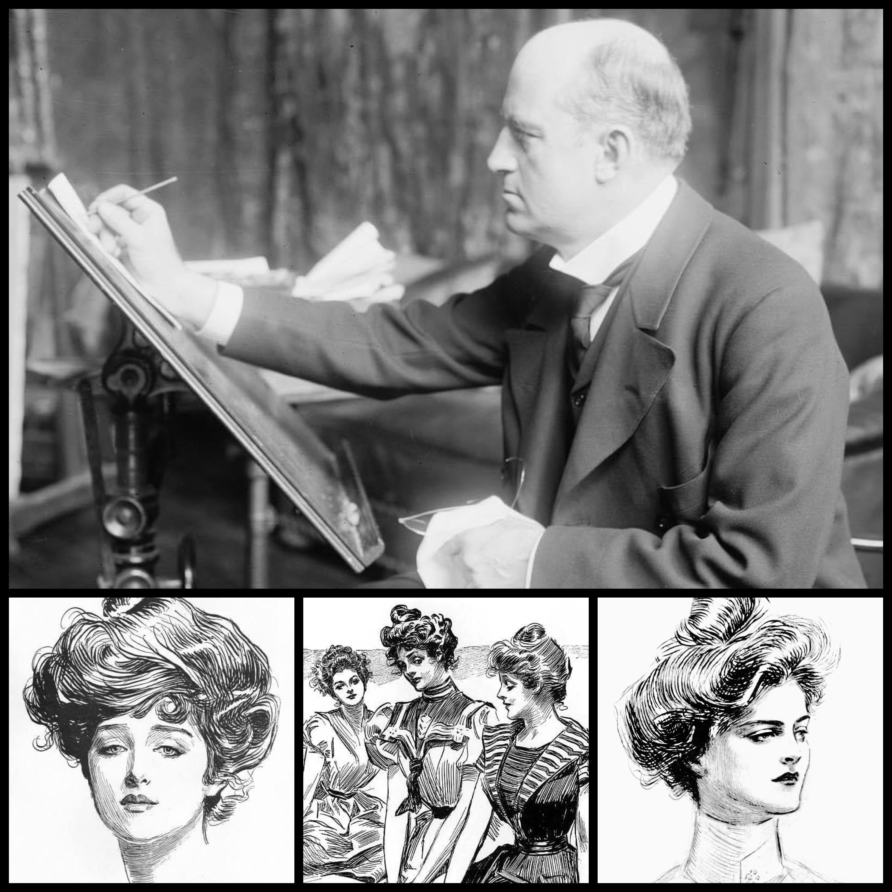 American artist Charles Dana Gibson and his “Gibson Girl” illustrations. Charles was born on today’s date September 14, 1867 in Roxbury, Massachusetts. Images via Wikimedia Commons, public domain in the US