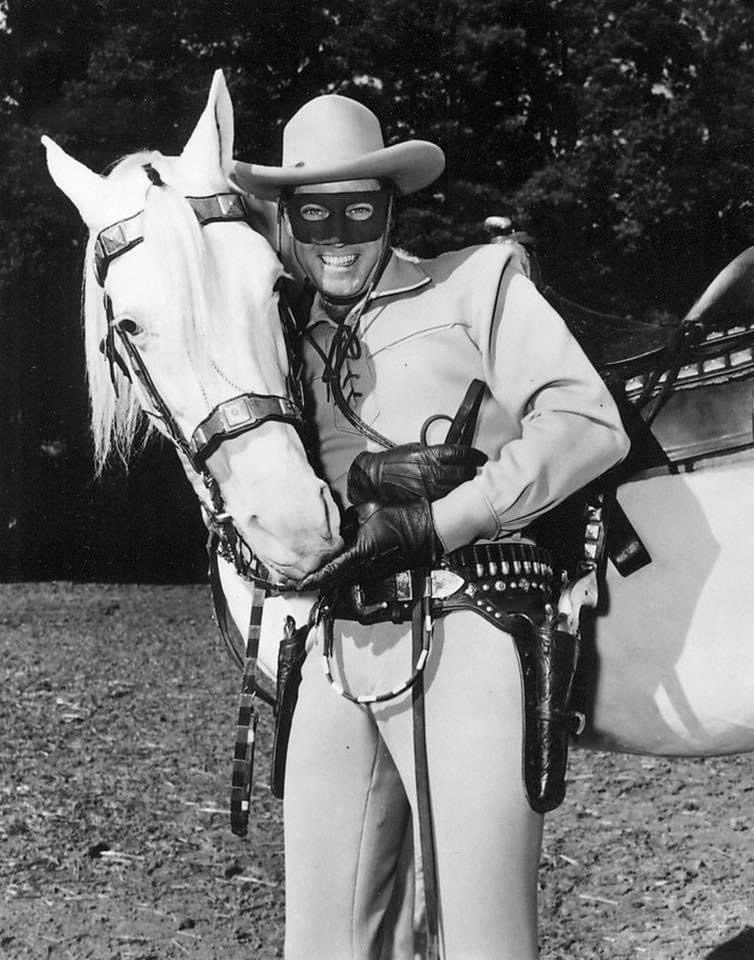 Clayton Moore, who played the role of The Lone Ranger in movies and on TV, was born on September 14, 1914 in Chicago, Illinois. Image: Lone Ranger and Silver in 1957 GAC-General Artists Corporation-management company via Wikimedia Commons, public domain