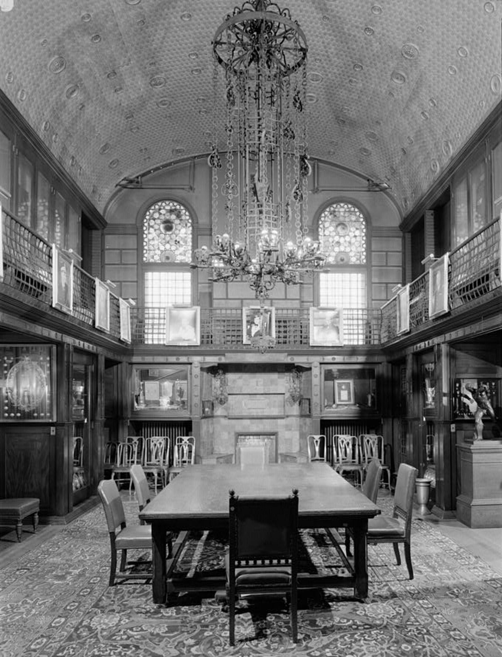 Image of the Trophy Room at the 7th Regiment Armory in Manhattan via Wikimedia Commons, public domain