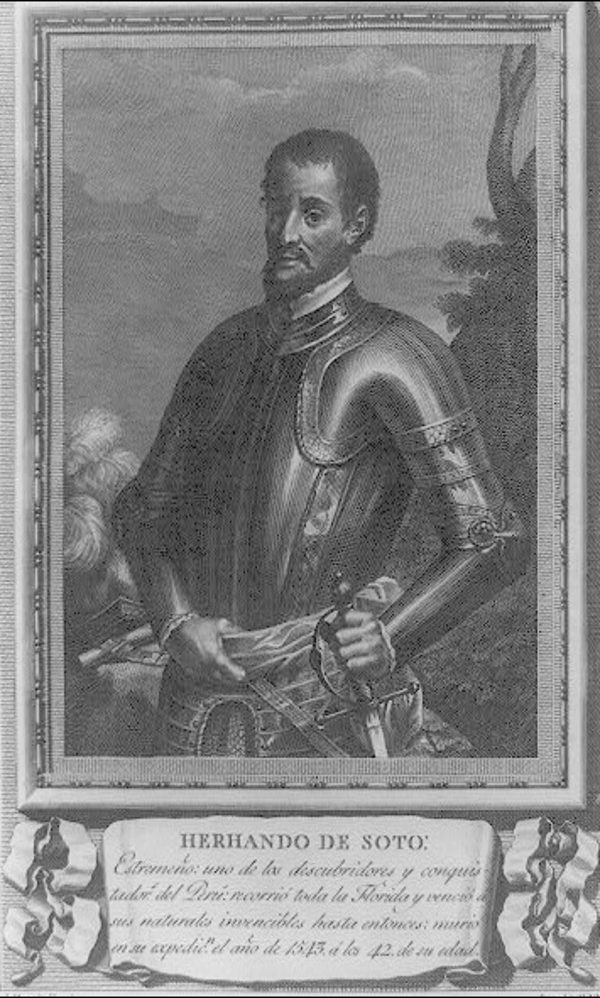 On September 30, 1541 de Soto and his men entered the territory of the Tula tribe in present day western Arkansas. Intense fighting between the two groups occured as the skilled Tula fighters used their long spears to defend themselves. There were a number of casualties on both sides. Image of de Soto via Library of Congress, no known restrictions