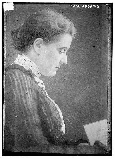 Image: Jane Addams in 1900 via Library of Congress, no known restrictions