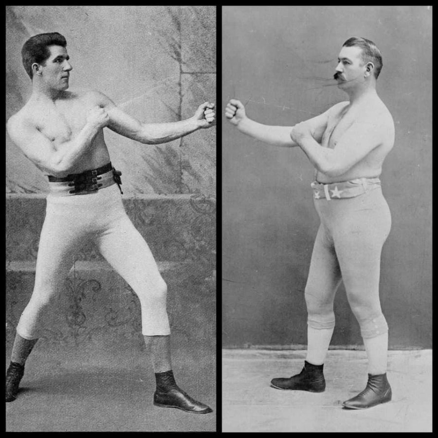 On September 7, 1892 James Corbett (left) defeated John Sullivan (right) for the Heavyweight title.