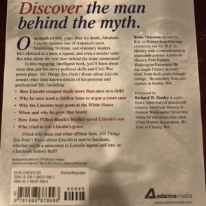 Discover the man behind the myth. One hundred fifty years after his death, Abraham Lincoln remains one of America's most fascinating, brilliant, and visionary leaders. He's idolized as a hero, a legend, and even a secular saint. But what about the real man behind the stone monument? In this engaging, intelligent book, you'll learn about more than just his savvy political skills and Civil War power plays. 101 Things You Didn't Know about Lincoln reveals other little known details of his personal and professional life, including: How Lincoln escaped death more than once as a child Why he once used a chicken bone to argue a court case Why the Lincolns kept goats at the White House When and why he grew that beard How John Wilkes Booth's brother saved Lincoln's son Who tried to rob Lincoln's grave Filled with these and other offbeat facts, 101 Things You Didn't Know about Lincoln is sure to fascinate, whether you're a newcomer to Lincoln legend and lore, or a hardcore history buff!