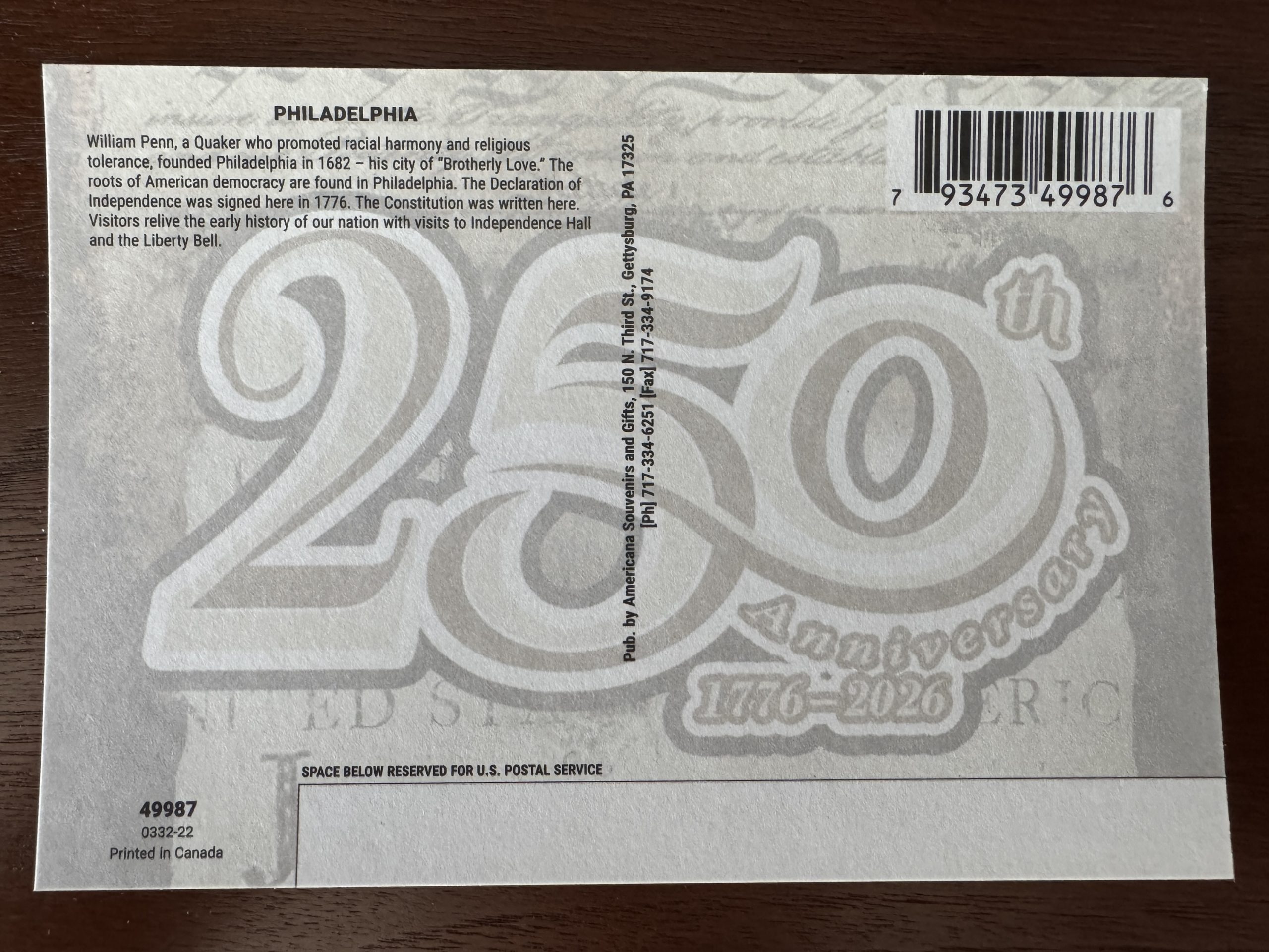 Categories: America's 250th!, Post Cards, Philadelphia Gift Shop