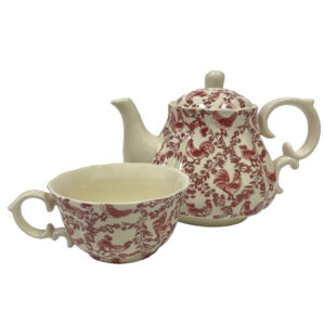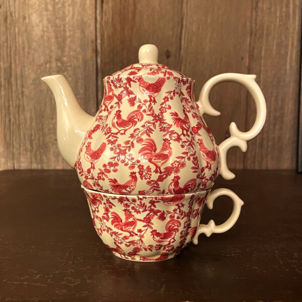 6-3/4″ Red Rooster Stacked Porcelain Tea for One