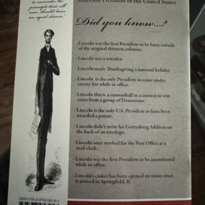 The front cover features a solemn black-and-white portrait of Lincoln, framed by a red and black backdrop that evokes the gravity of the Civil War era. Inside, readers are greeted by a “Did You Know?” panel — a punchy, accessible format that delivers emotional resonance and historical intrigue in equal measure. From Lincoln’s wrestling days to the posthumous mystery of his reopened casket, each fact is a conversation starter, ideal for classrooms, gift shops, or civic exhibits.