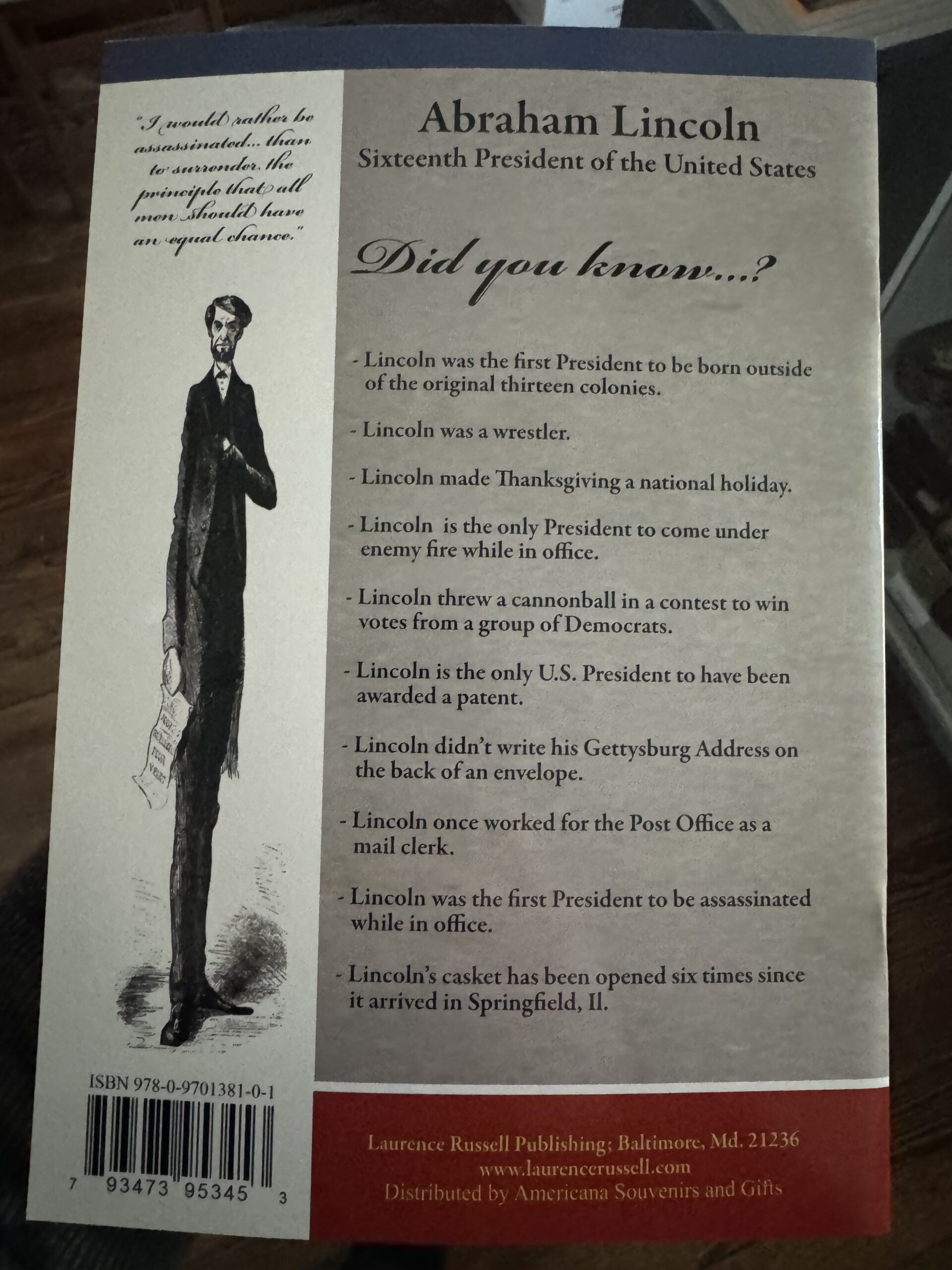 Published by Laurence Russell Publishing and distributed by American Souvenirs and Gifts, this booklet is designed for impact — a perfect blend of visual storytelling and historical surprise. Whether you’re curating a museum shelf or sparking dialogue in a classroom, it delivers Lincoln’s legacy in a format that’s both memorable and emotionally compelling.