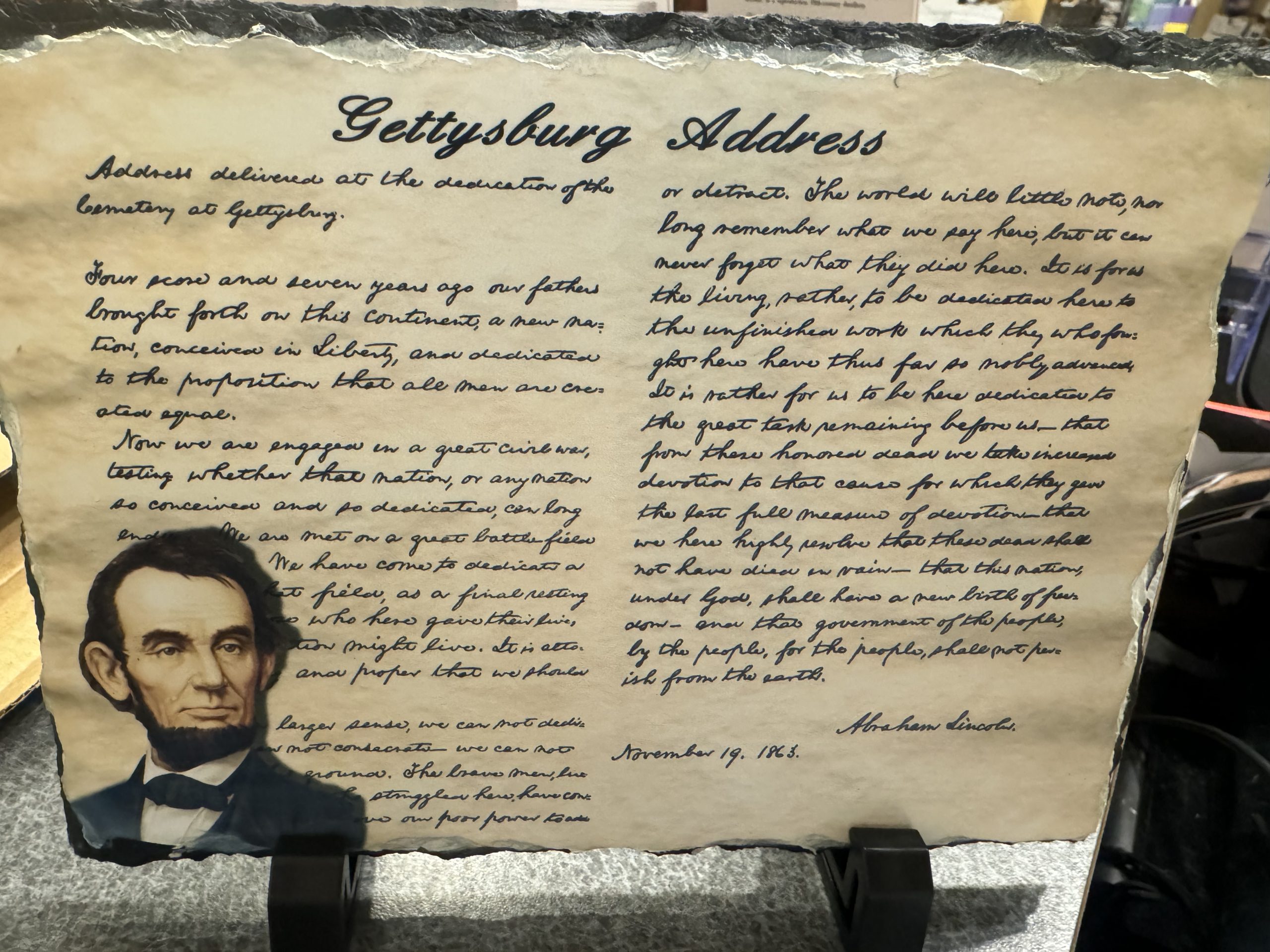 Abraham Lincoln – Gettysburg Address slate