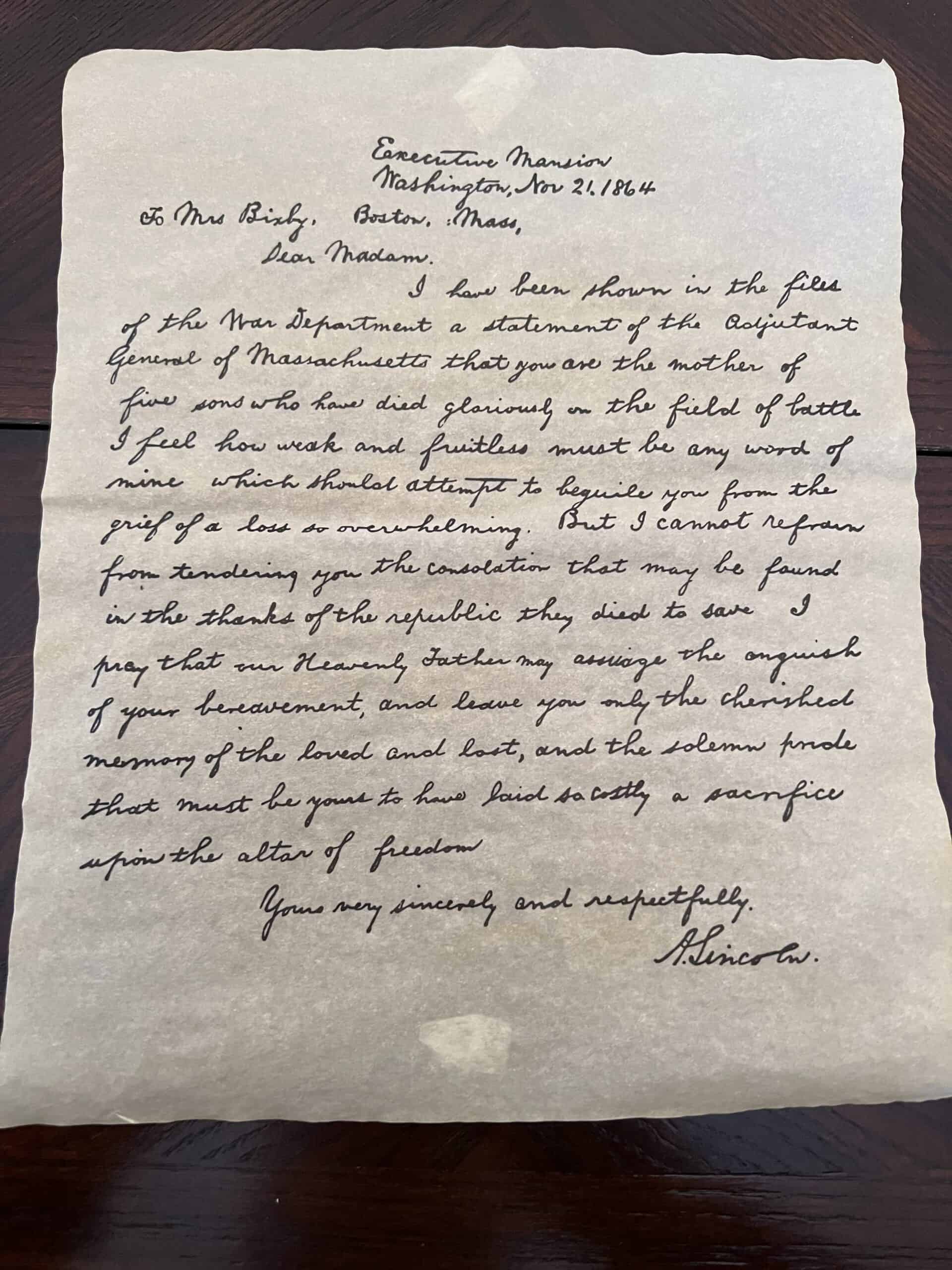Abraham Lincoln’s heartfelt letter to Mrs. Bixby