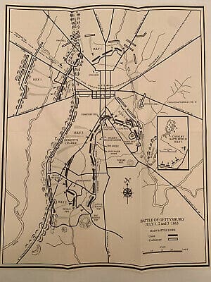 Relive history with our Gettysburg Battle Map. A detailed cartographic representation of the pivotal Civil War clash.