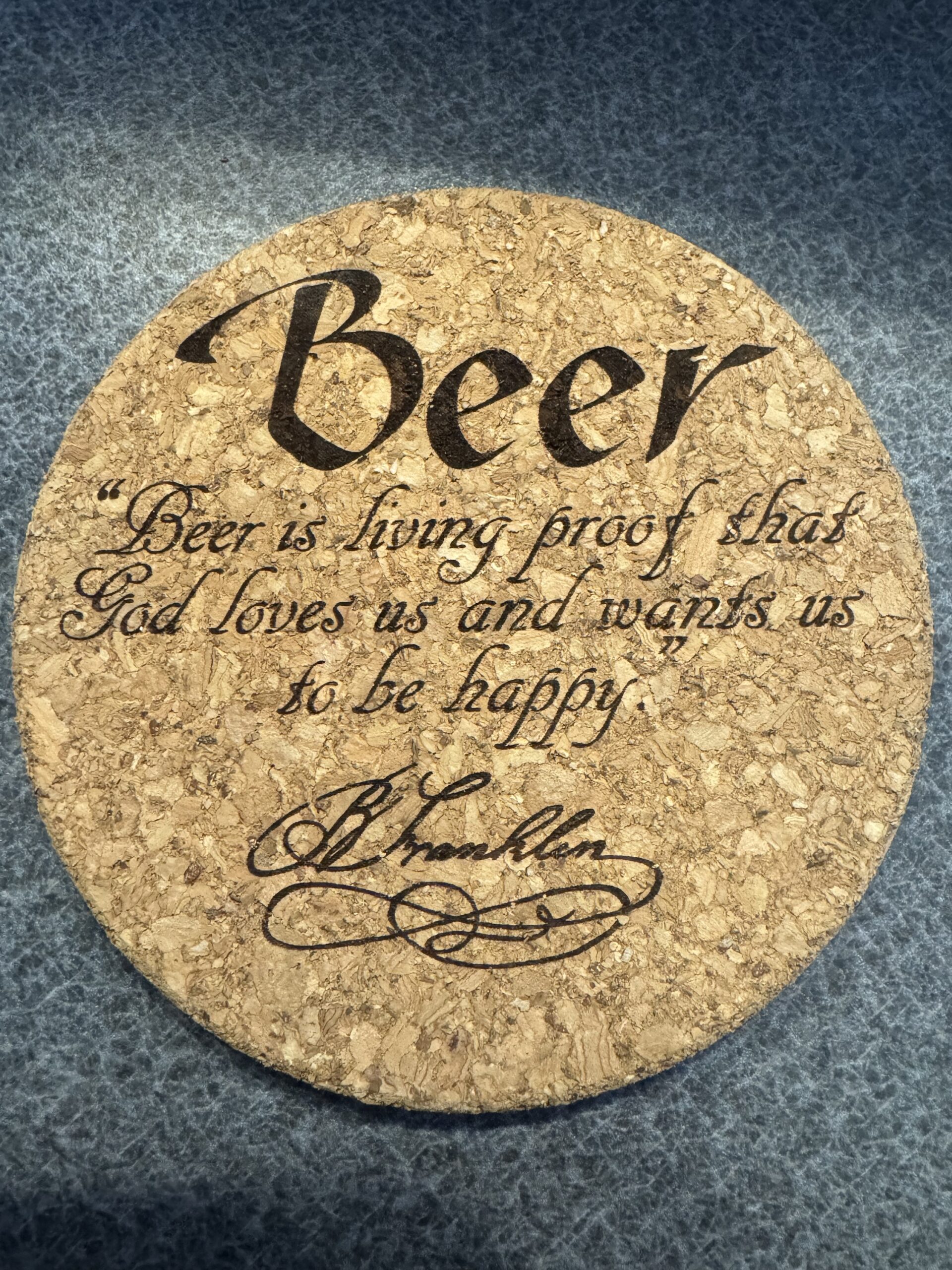 Toast to wisdom! Our Ben Franklin Beer “Conjectured” Quote Coaster adds wit to your brew.