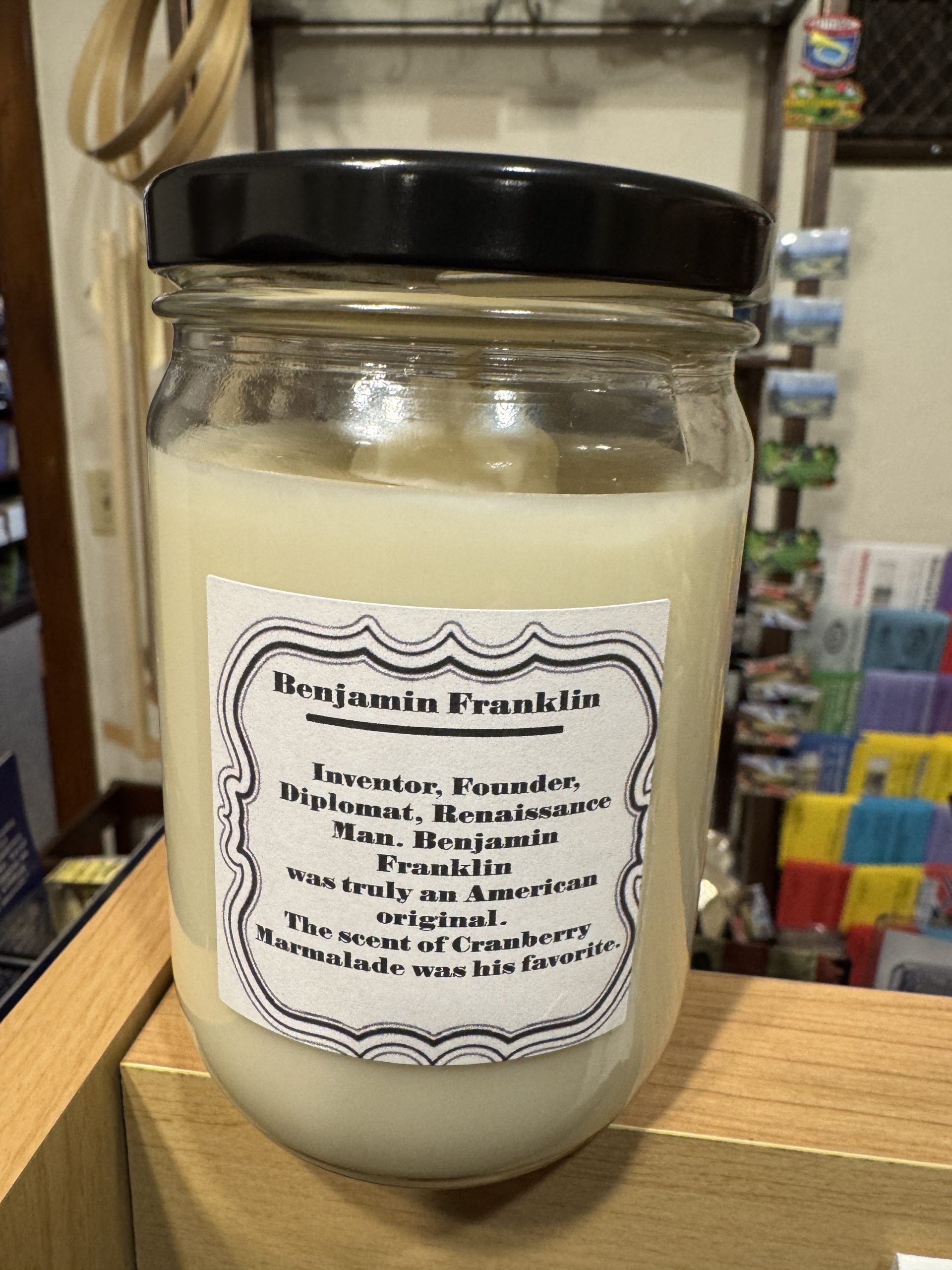 This scent is cranberry marmalade as Franklin often favored cranberries.