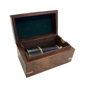 Brass Leather-Wrapped Pocket Telescope w/ Wood Display Box