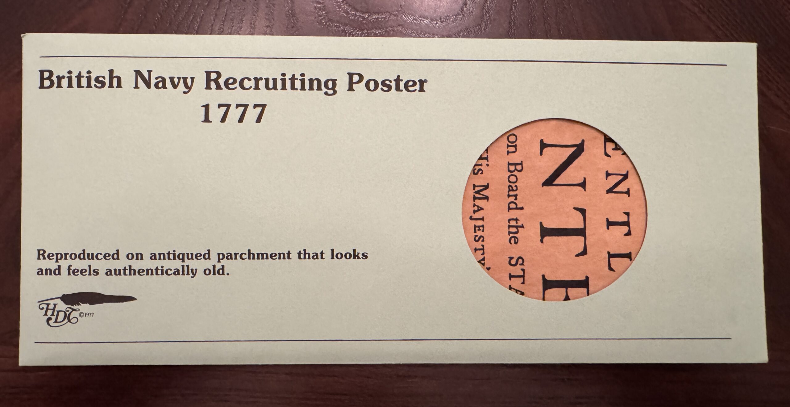 Printed in the Colonies, seeking sailor recruits to fight against the Colonists.