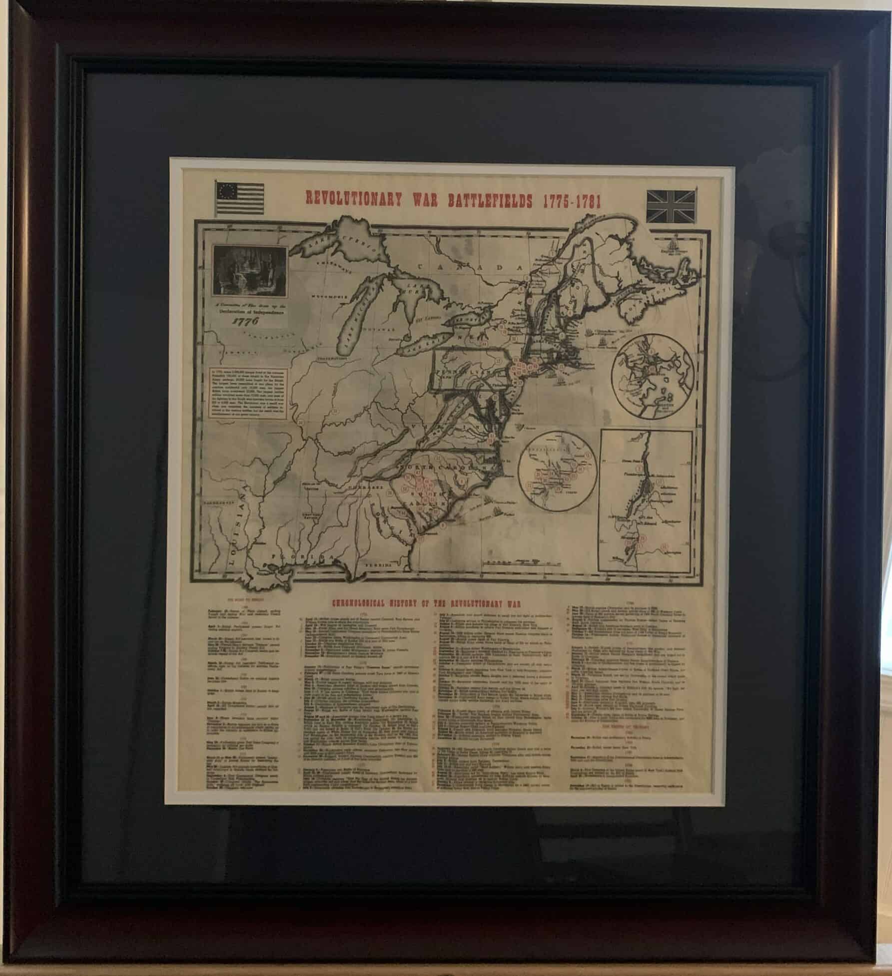Chronological Map of Revolutionary War Battlefields in an Elegant Frame