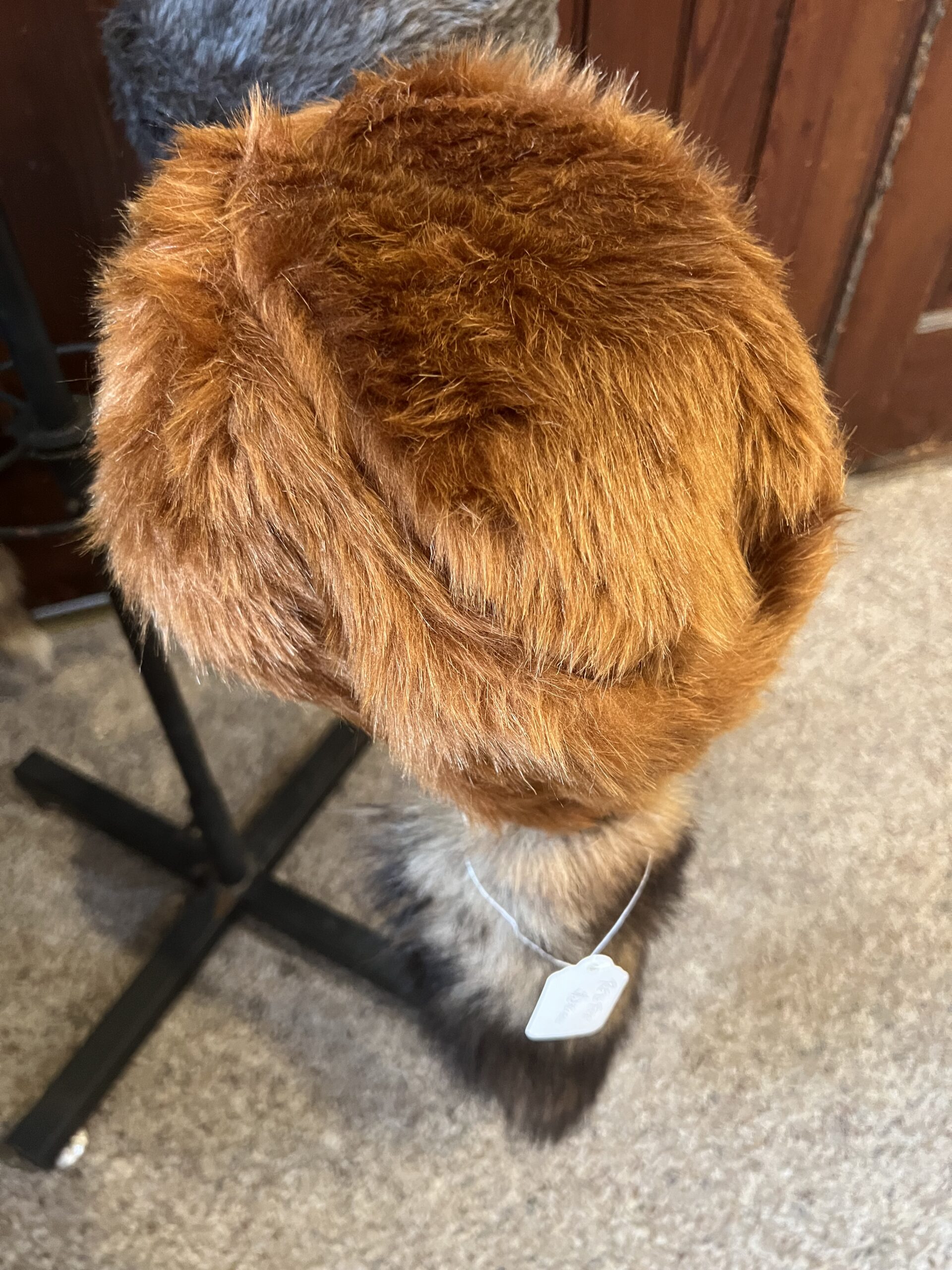 • Reddish-brown faux fur crown, evoking the warmth of autumn woods