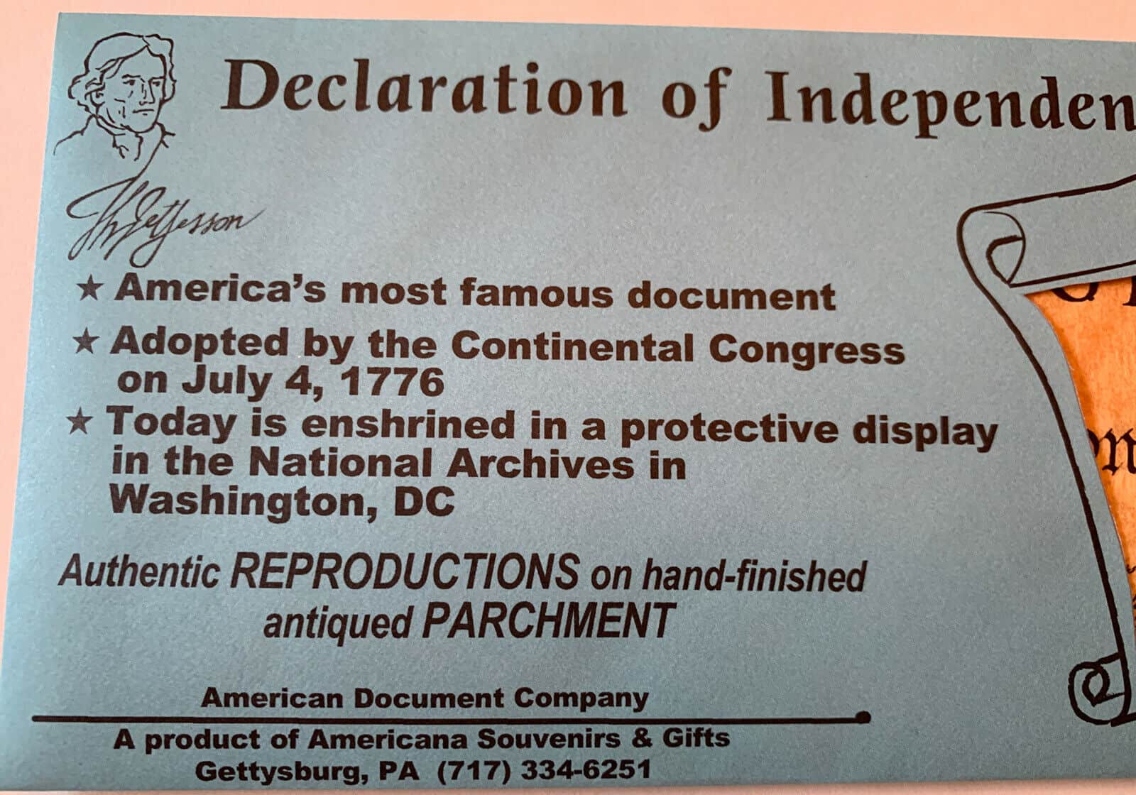Declaration of Independence – parchment Replica