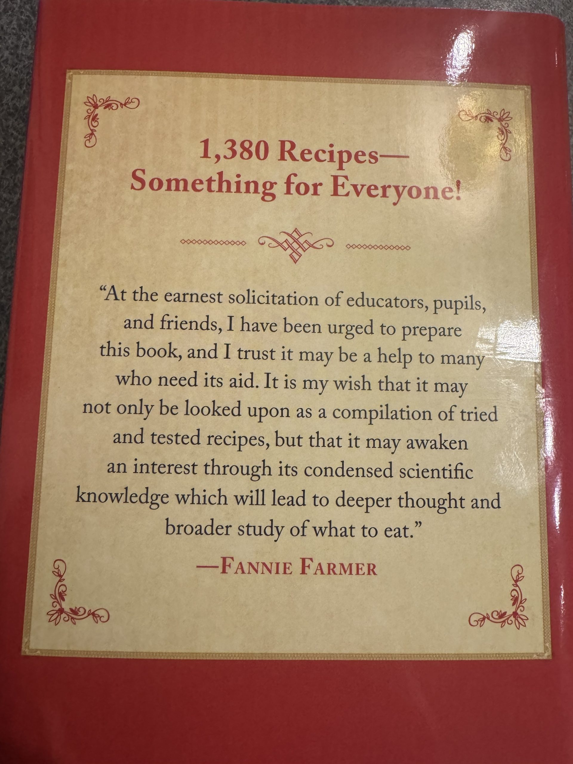Fannie Farmer cookbook with 1,380 classic recipes from 1896