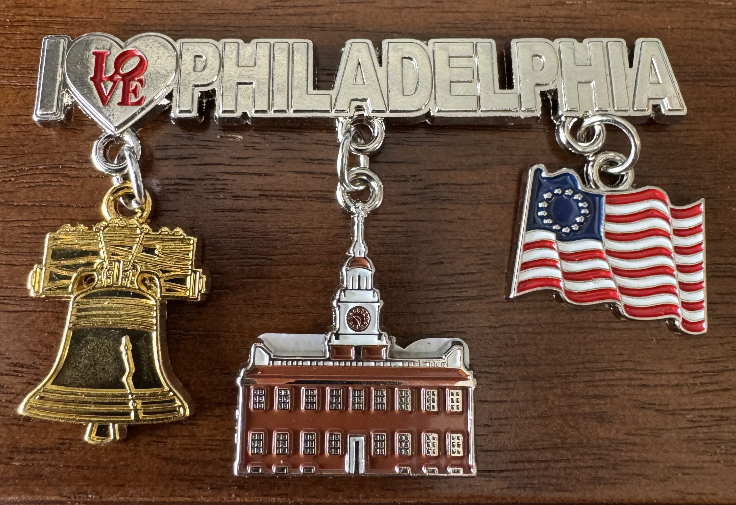 The “I LOVE Philadelphia” dangle magnet is a charming and colorful addition to any kitchen or home decor. Featuring Philly icons, this magnet is sure to bring a touch of Philadelphia pride to your refrigerator or any other magnetic surface. Perfect for collectors or fans of the city, this magnet is a fun and unique way to show your love for Philadelphia.