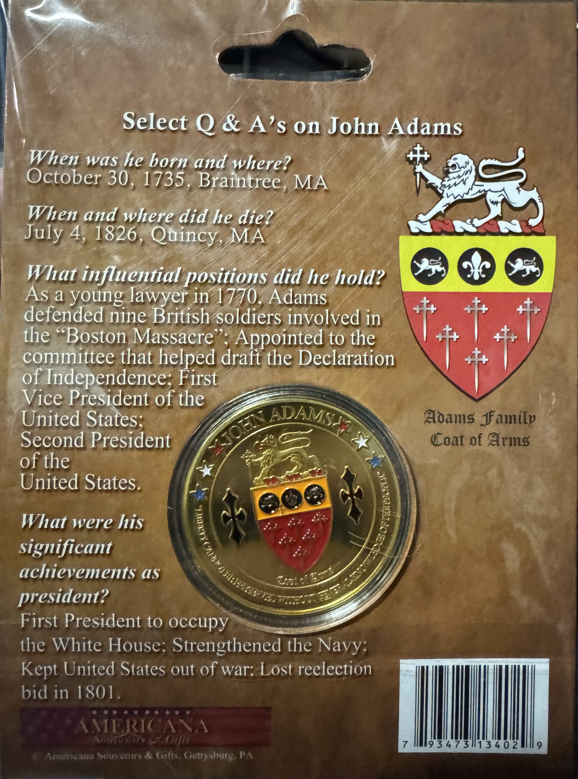 Honor history! Own a John Adams Coin. Collectible, regular price, now on sale! Limited stock.