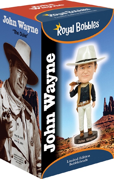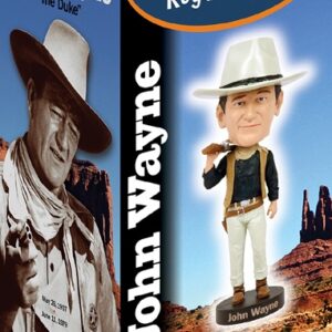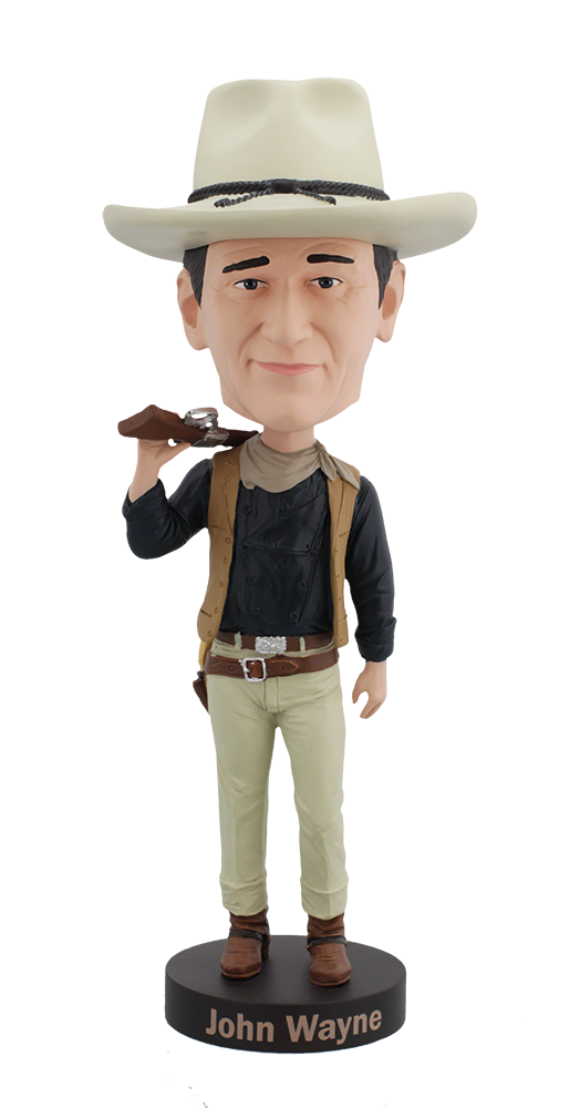 With his trademark swagger and slow drawl, John Wayne Cowboy has become an icon of Western pictures. This bobblehead features his signature belt buckle, ivory-handled pistol, and bullet belt. Royal Bobbles features several different product lines of famous icons including entertainers, artists, and historic/political figures. Each features an authenticity hologram with a unique serial number. Each premium bobblehead comes in a colorful collector’s box with a custom-cut Styrofoam inner protection. Made from high quality, heavyweight polyresin, and individually hand-painted. As each bobblehead is carefully researched, crafted with care, and extremely detailed. Royal Bobbles is leading the industry with its realistic and lifelike likenesses, making them right at home in any environment.