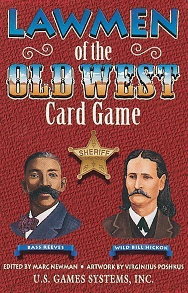 This illustrated playing card deck is part of U.S. Games Systems’ popular "Old West" series of card games. This fact-filled deck features 13 different Lawmen (individuals and groups): The Oklahoma Guardsmen; John Slaughter; Charlie Siringo; Dallas Stoudenmire; Tom Rynning: Elfego Baca; Sam Six Killer; Bass Reeves; Tom Smith; Pat Garrett; Wild Bill Hickok; The Masterson Brothers; and The Earp Brothers (Morgan, Virgil, and Wyatt Earp).