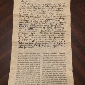 Lincoln’s Farewell Address At Springfield, Illinois 1861 – Parchment replica